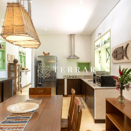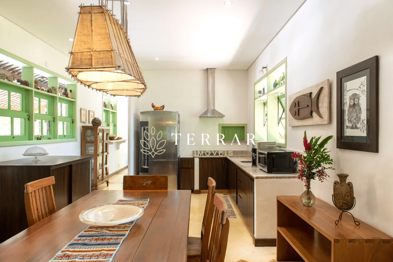 A cozinha social, com um layout funcional e integrada à sala de jantar, é o coração da casa, pronta para receber suas melhores receitas e confraternizações. Além disso, a despensa e o lavabo agregam ainda mais praticidade ao seu cotidiano. A ampla varanda, com sala de estar e espaço gourmet equipado com churrasqueira e forno de pizza, é o local ideal para celebrar momentos inesquecíveis com amigos e familiares.