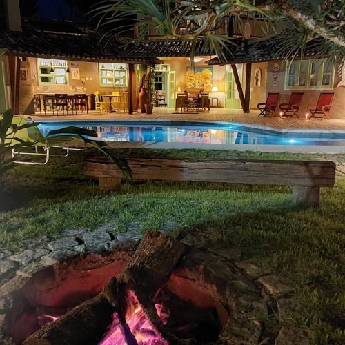 E a experiência não para por aí! Na área externa, três suítes adicionais proporcionam conforto para hóspedes ou familiares. A piscina com deck de madeira é perfeita para os dias ensolarados, e a área para fogueira promete noites memoráveis sob as estrelas.