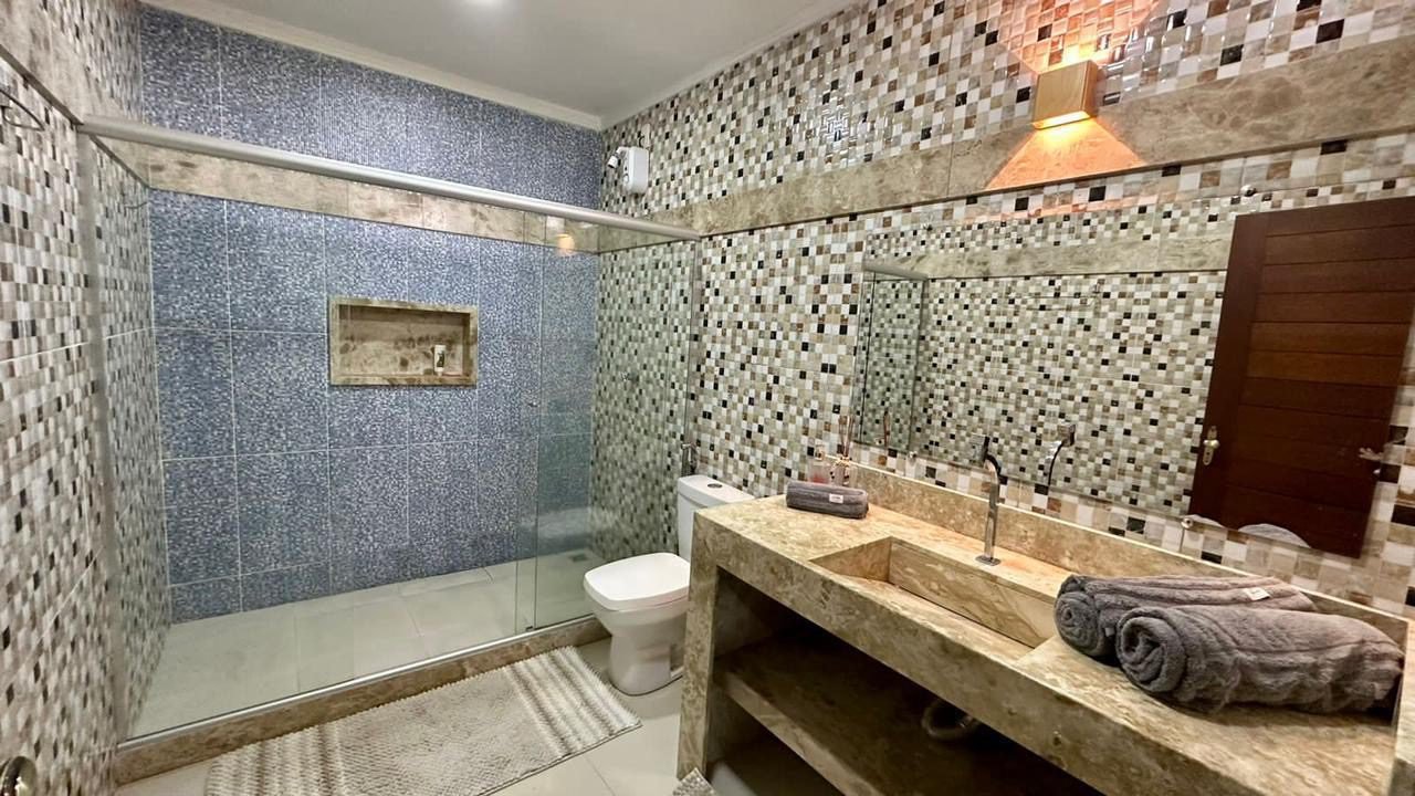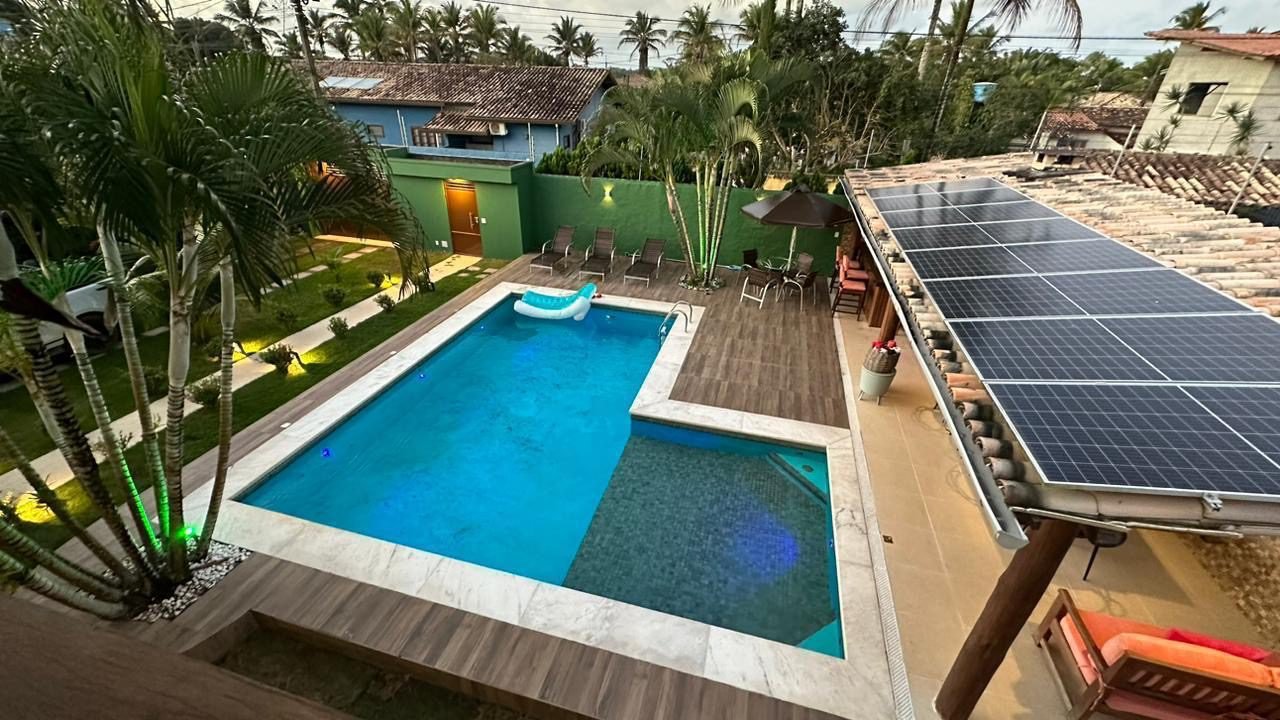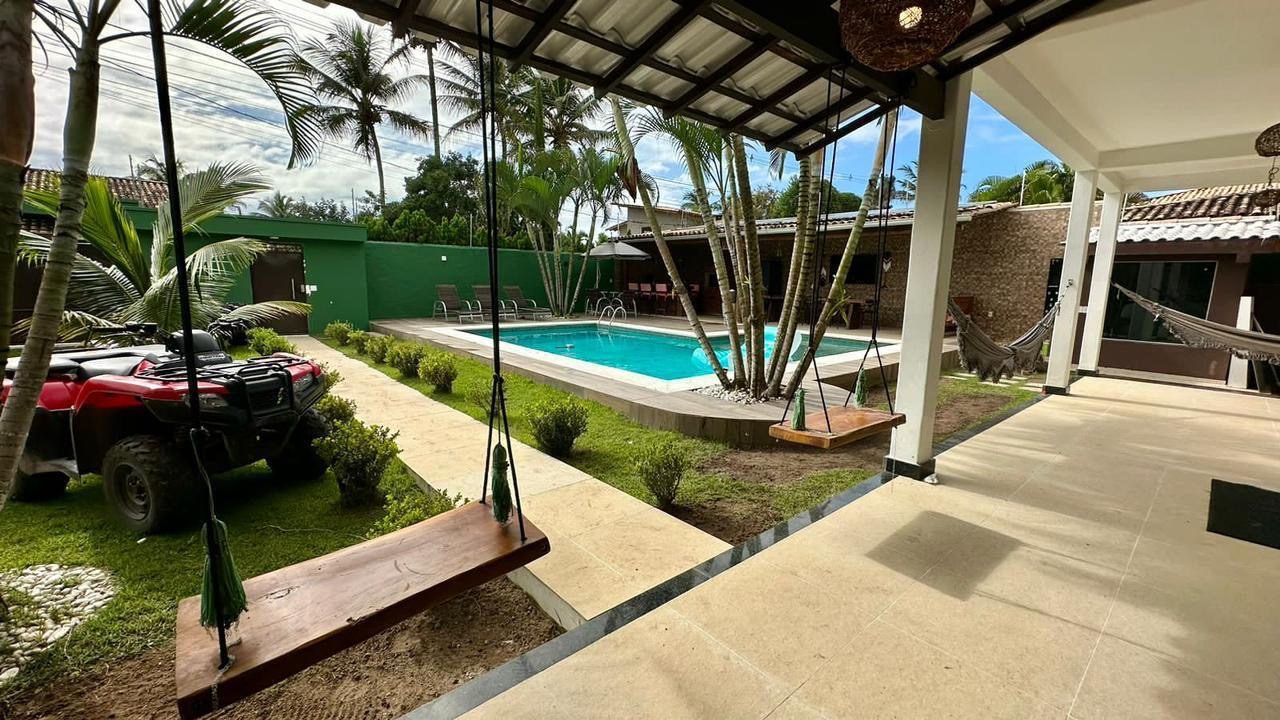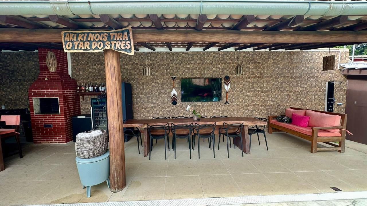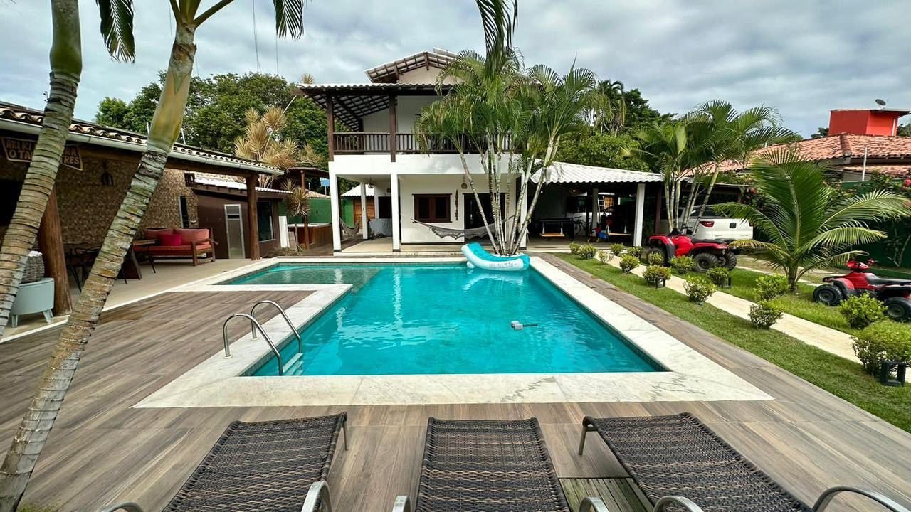 Casa de alto padrão em Trancoso. Localizada no Condomínio Coqueiral, 2km do Quadrado e Praia dos Nativos. Possui 4 suítes espaçosas, área de lazer completa com piscina, sauna, ducha, jacuzzi, espaço kids e varanda de jogos.
