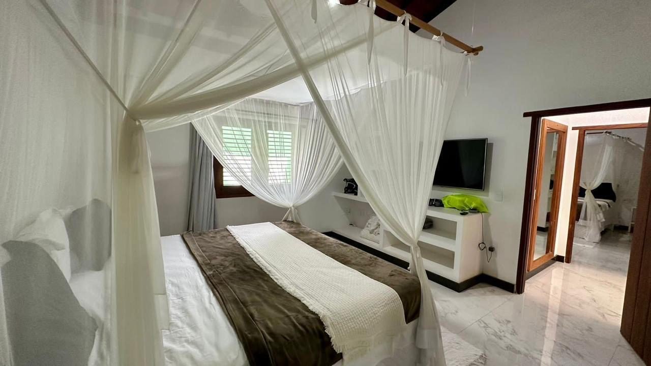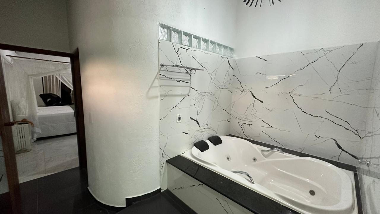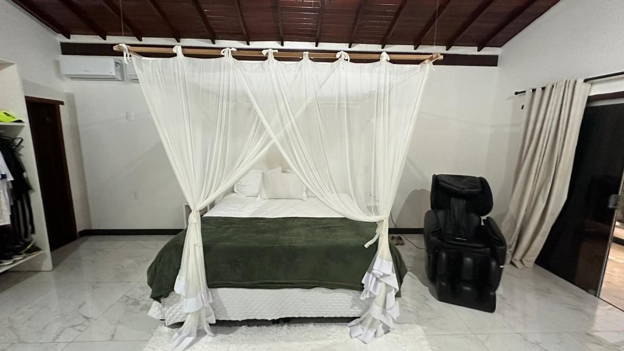 Suíte master : cama king size + ar condicionado , cortinado ,tv 65, cadeira de massagem, banheiro bem grande com banheira de hidromassagem, varanda.
