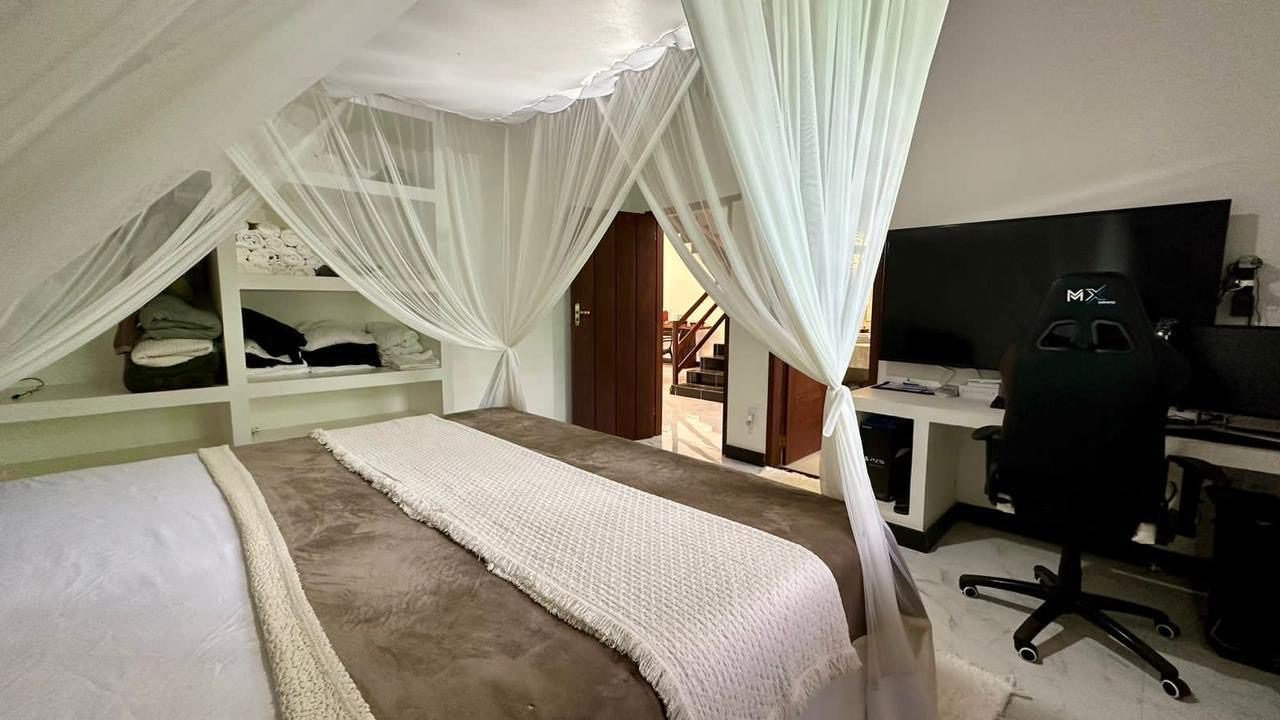 Suíte 1 : cama king size , ar condicionado, cortinado , tv 60 armário e mesa para computador