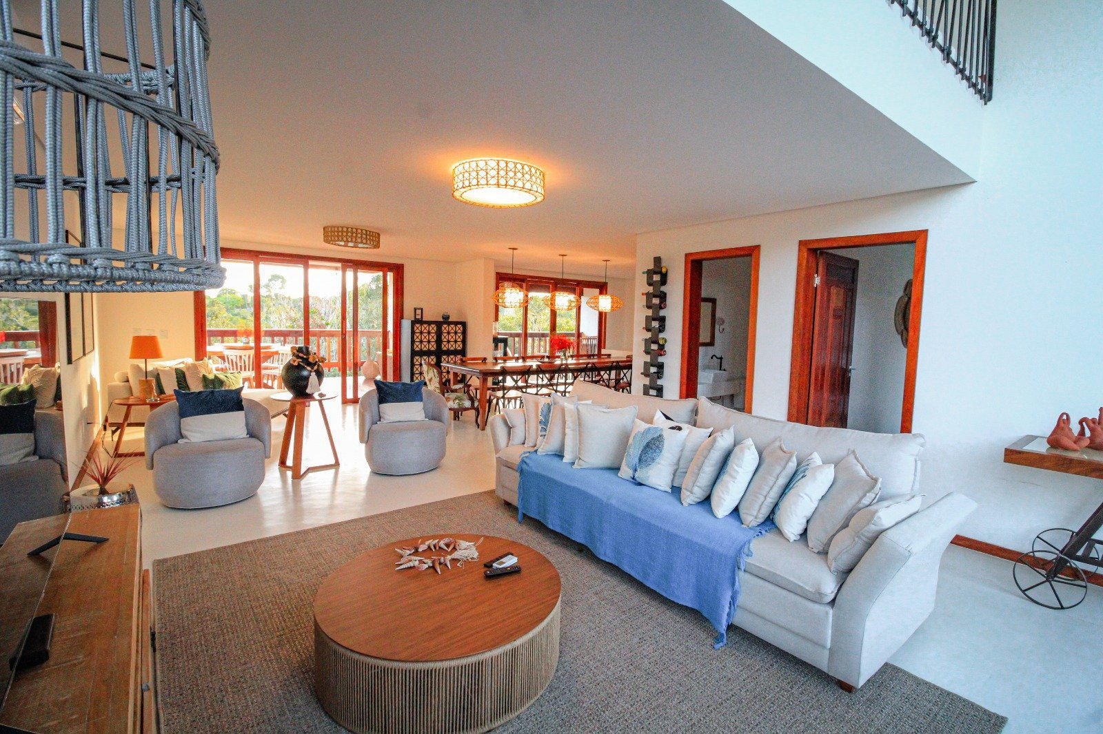 Sala de estar, sala de jantar e cozinha