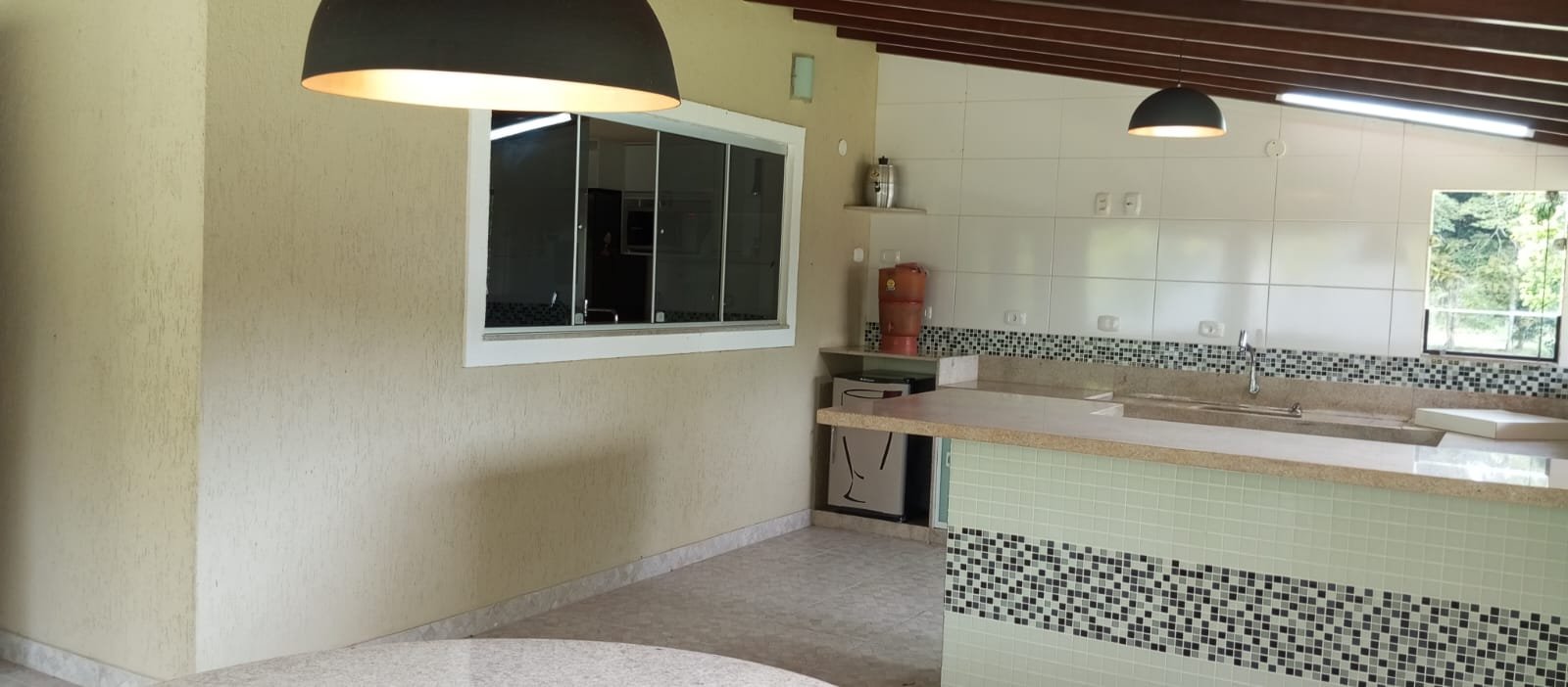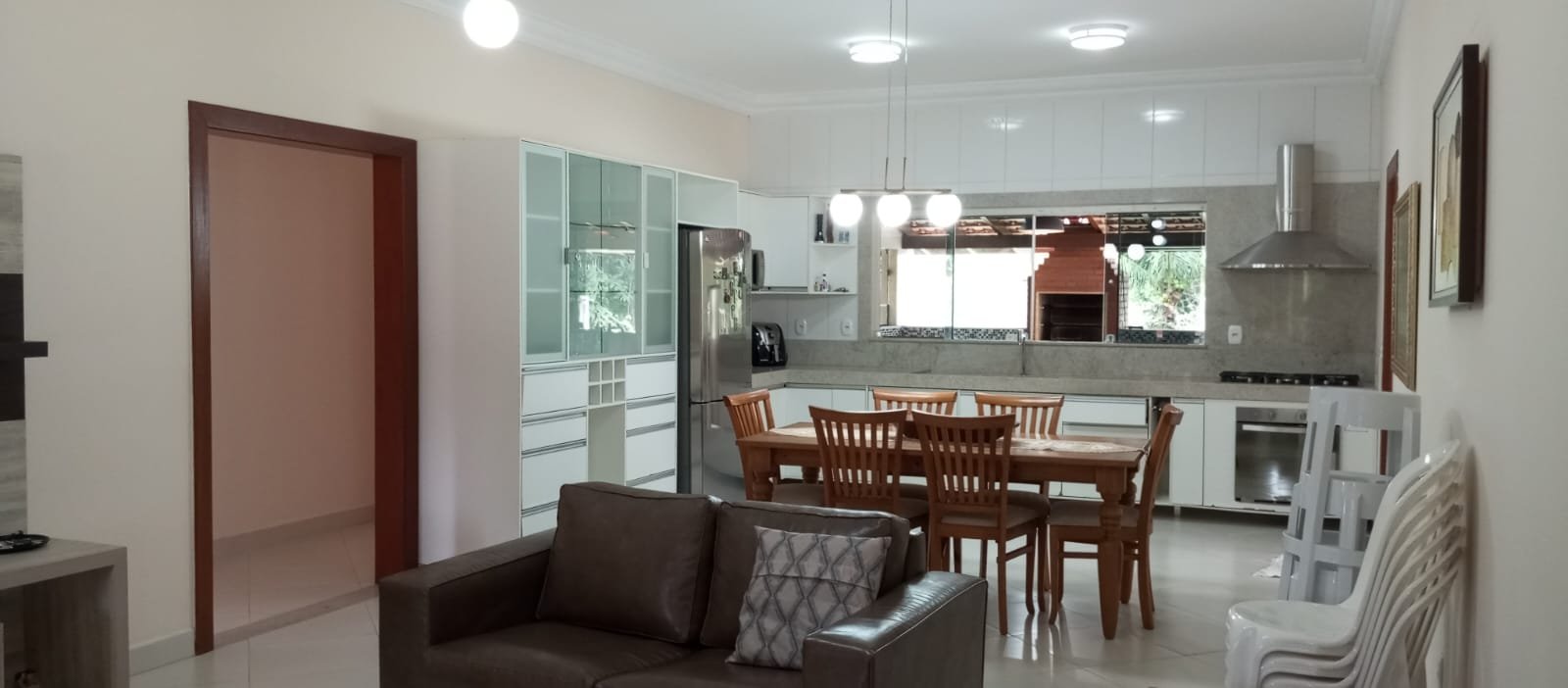 Ampla sala integrada com cozinha